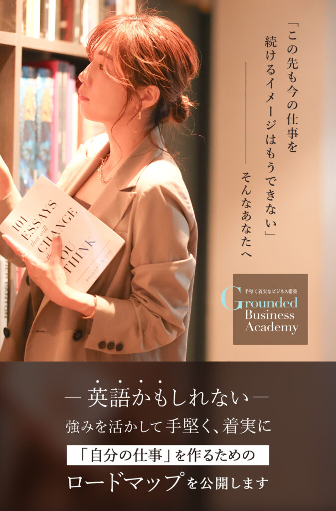はじめまして、英語を活かした大人のビジネスアカデミー、Grounded Business Academy代表の森心(もり・こころ)です。