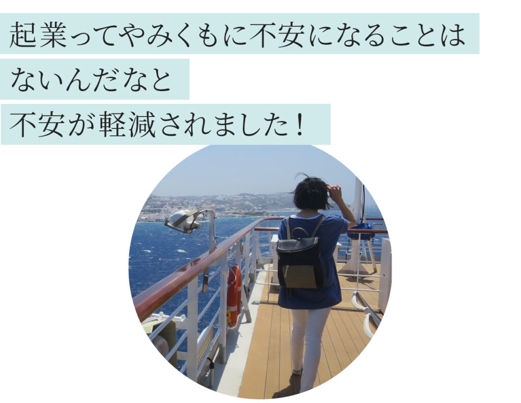 会社などで雇われる経験しかなかったので、起業って手探りで不安だったのですが、その中でいかにリスクを最小限に抑えるのがどういうことか、その考え方や方法も学べることで、起業ってやみくもに不安になることはないんだなと起業への不安が軽減されました。